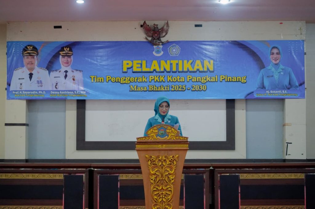 PANGKALPINANG,jendelapersada.com – Wali Kota Pangkalpinang, Prof. Saparudin secara resmi melantik dan mengukuhkan Pengurus Tim Penggerak (TP) Pemberdayaan Kesejahteraan Keluarga (PKK) Kota Pangkalpinang untuk masa bakti 2025–2030. Pelantikan berlangsung di Balai Besar Betason Kantor Wali Kota, Jumat (24/10/2025).