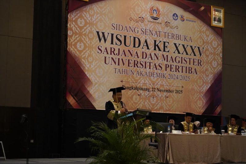 Hal tersebut ditegaskan oleh Wali Kota Pangkalpinang, Prof. Saparudin, saat menyampaikan orasi ilmiah dalam Wisuda Sarjana dan Magister ke-XXXV Universitas Pertiba di Ballroom Novotel Bangka, Sabtu (22/11/2025).