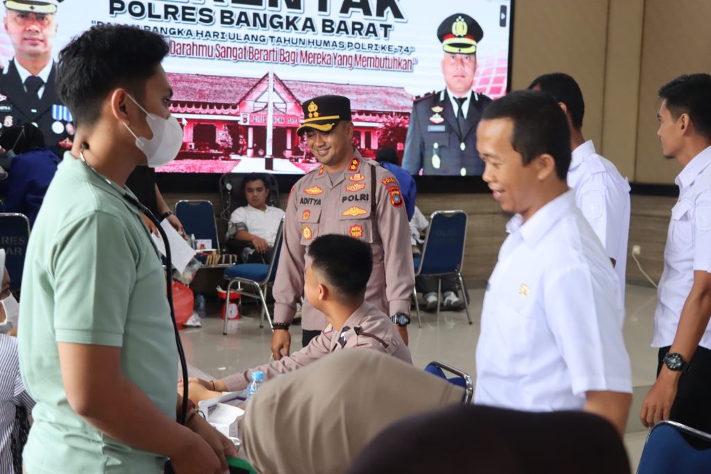 MENTOK, jendelapersada.com – Polres Bangka Barat menggelar aksi donor darah di Gedung Catur Prasetya Mapolres, Rabu (22/10/2025). Kegiatan ini digelar sebagai respons atas meningkatnya kasus Demam Berdarah Dengue (DBD) di wilayah tersebut yang berdampak pada peningkatan permintaan darah.